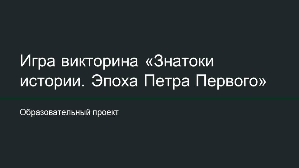 Актуальность данной работы обусловлена необходимостью повышения интереса к истории России среди молодежи. В условиях современного информационного общества, когда доступ к знаниям стал проще, но одновременно и более поверхностным, важно находить новые формы и методы обучения, которые бы способствовали углубленному изучению исторических событий и личностей. Викторина «Знатоки истории. Эпоха Петра Первого» представляет собой одну из таких форм, которая не только развлекает, но и обучает, создавая атмосферу соперничества и командного взаимодействия. В ходе игры участники смогут продемонстрировать свои знания о жизни и деятельности Петра I, а также узнать много нового о его реформах, военных кампаниях, культурных достижениях и личных качествах.