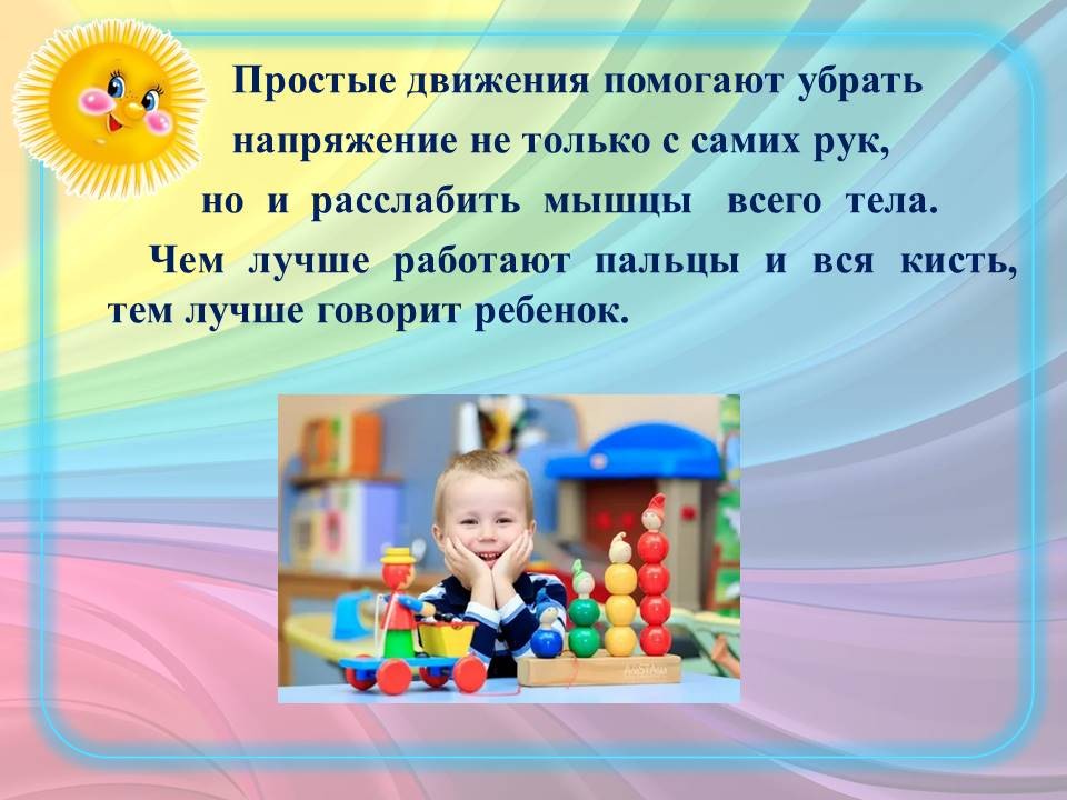 Благодаря развитию пальцев в мозгу формируется проекция «схемы человеческого тела», а речевые проекции находятся в прямой зависимости от тренировки пальцев. Такую тренировку следует начинать с самого раннего детства.