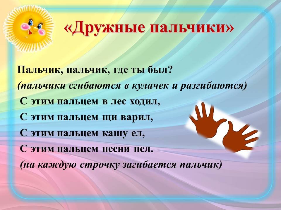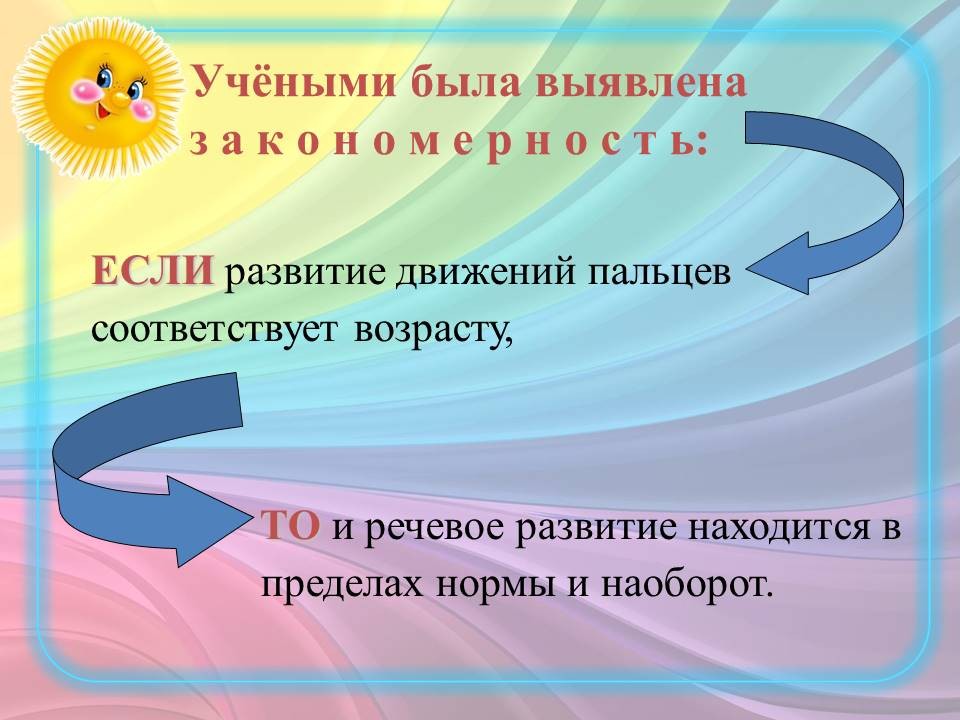 Известный исследователь детской речи М.М.Кольцова отмечала, что кисть руки нужно рассматривать как орган речи. Если движения пальцев рук соответствуют возрасту, то и речевое развитие находится в пределах нормы.