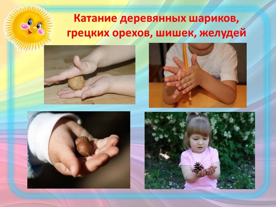 Мы используем в работе с воспитанниками для развития мелкой моторики наряду с традиционными методами и приемами нетрадиционные. К нетрадиционным мы относим такие игры и упражнения как: «сухой» бассейн, природный материал (шишки, орехи, крупы, семена растений, песок, камни), массаж с помощью кольца Су-джок, различные бытовые предметы и бросовый материал (прищепки, расчески, бигуди, карандаши, резинки для волос и другое).