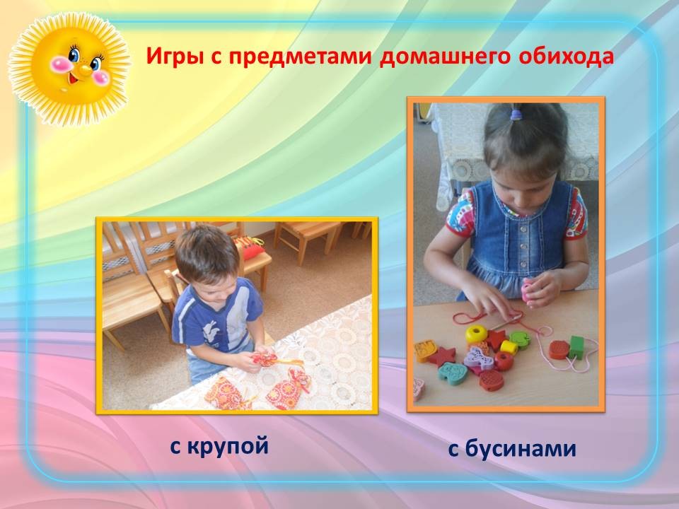 Такой материал всегда доступен, не требует больших финансовых затрат, помогает снять эмоциональное напряжение у детей. Играя с природным материалом, мы отмечаем, что дети стали проявлять высокую познавательную активность, стали более общительными и спокойными. Упражнения с природным материалом стараемся включать в разные режимные моменты: прогулку, игровую деятельность, непосредственно образовательную деятельность. Применение крупы (фасоль, горох, рис, манка, гречка), как показывают педагогические наблюдения, является очень интересным, полезным и приятным занятием для детей. Например, игры «Золушка», «Прячем ручки», «Разложи по тарелочкам», «Отгадай, какая крупа в мешочке», «Сухой бассейн» и др. Играя с крупами, мы делаем пальчики ребенка более чувствительными и ловкими. Ведь взять в руки крупинку – очень сложно для ребенка.