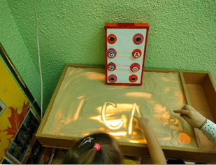 Описание: ребенку предлагается на слух определить заданный звук и найти крышку с соответствующей буквой.