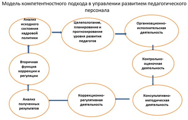 При компетентностном подходе процесс постановки целей отличается от традиционного тем, что руководитель выбирает цели и формулирует задачи кадровой политики сообразуясь с особенностями и уровнем компетенций педагогов, на основе понимания ситуации, возможностей, траектории, потребности их развития, а не на основе выборки целей и задач из программы, реализуемой в учреждении. Для этого используются материалы, полученные в ходе рефлексии педагогом своих достижений, результатов, проблем, перспектив и др.
