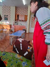 - Молодцы, все отгадали. Вот вам подсказка куда дальше идти и где следующий ключ найти. Слушайте внимательно! Путь ваш не близок и не далек в комнату сказок он вас ведет.