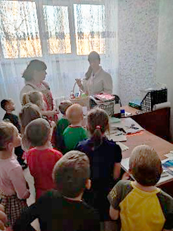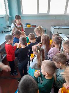 - Давайте проверим. У меня в большой корзине продукты и предметы, вам нужно разложить их по маленьким корзинкам. В желтую - мы кладем вредные продукты, в белую - полезные, а предметы личной гигиены – в синюю.