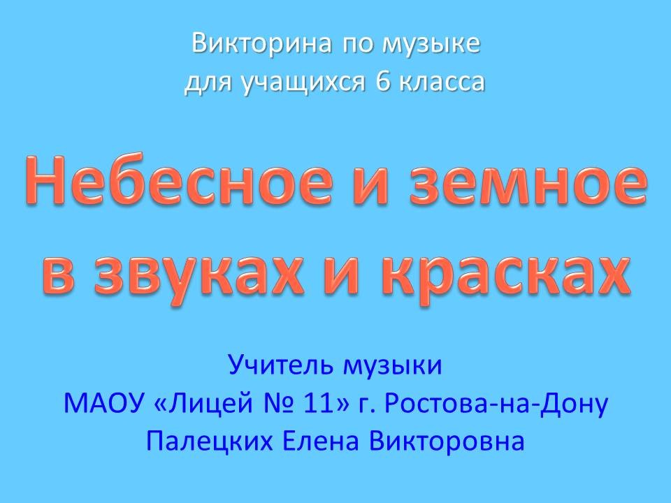 «Небесное и земное в звуках и красках». Викторина по музыке для учащихся 6-го класса