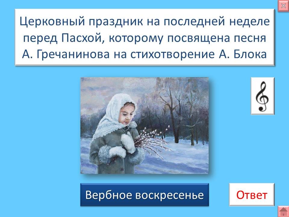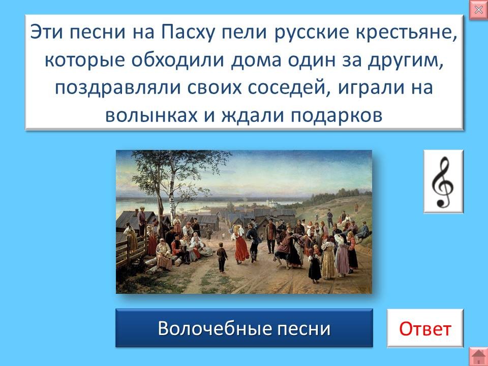 Знать название одного из жанров песен, исполняемых во время празднования Воскрешения Господня, иметь представление об обычаях и традициях русского народа. |