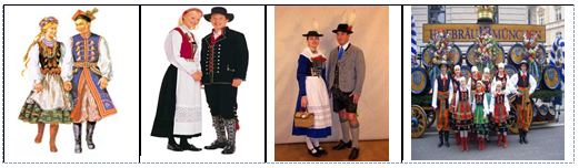 Посмотрите на национальные костюмы народов Европы. Что у них общее, а в чем отличие?