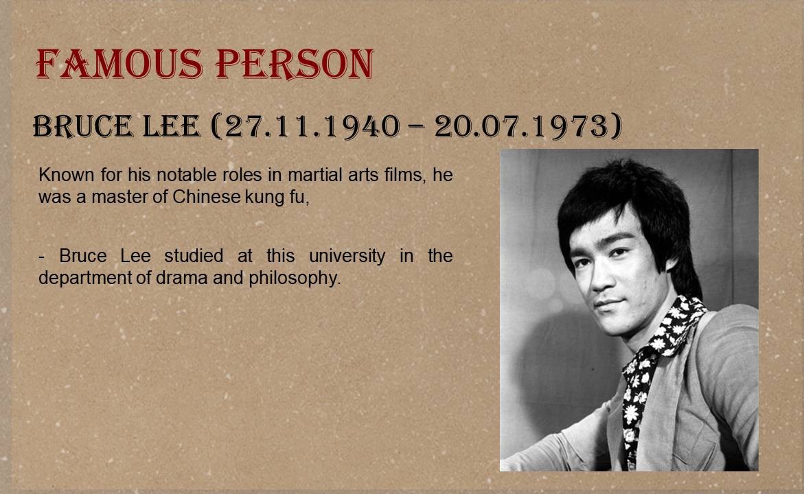 (24 slide – 2 click) Bruce Lee studied at this university in the department of drama and philosophy.