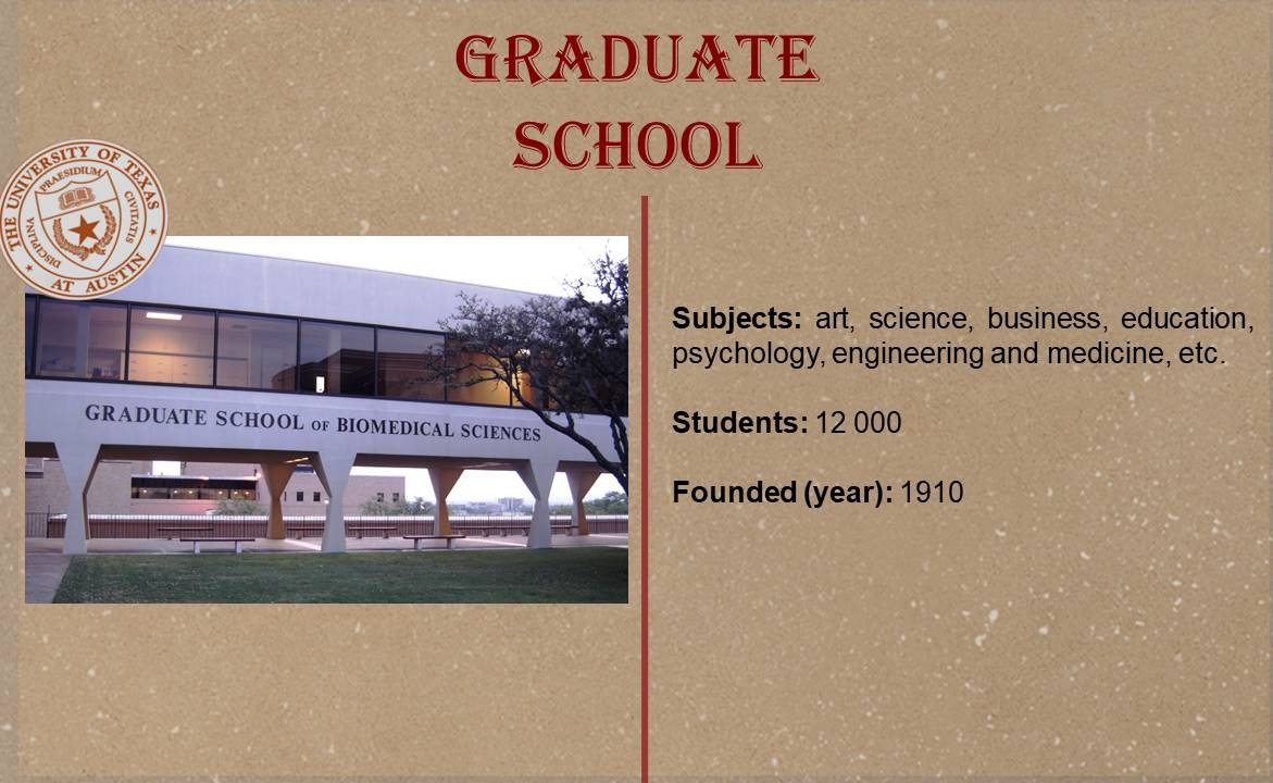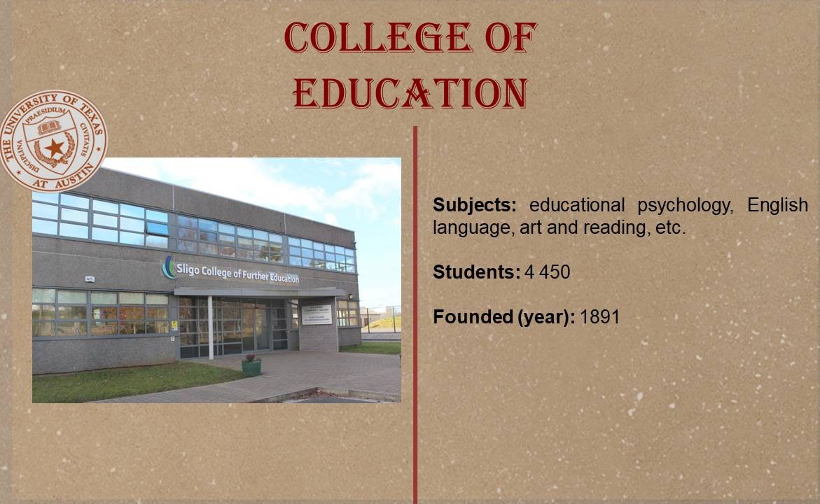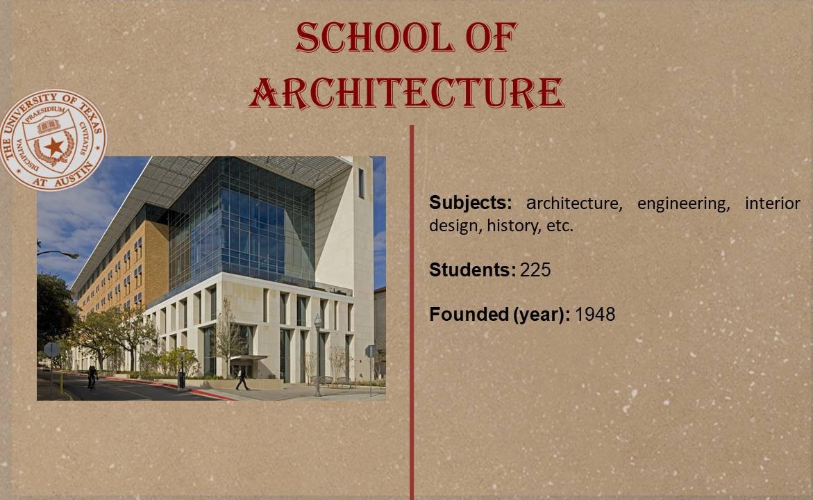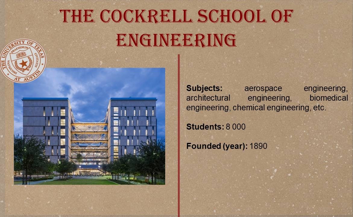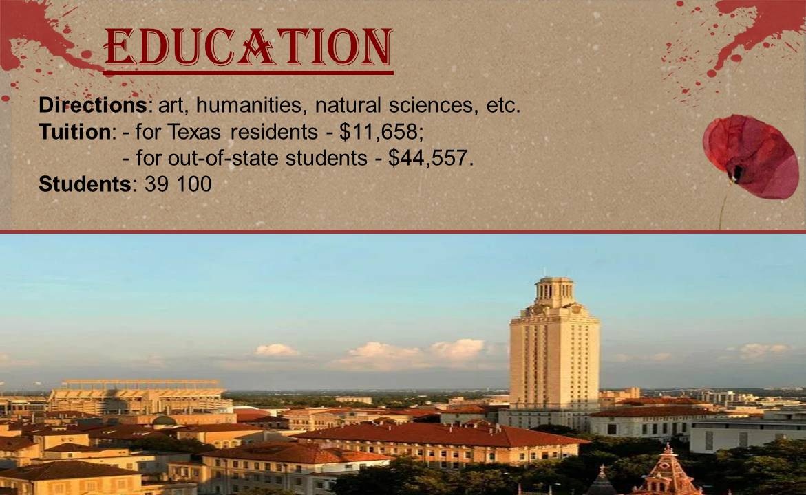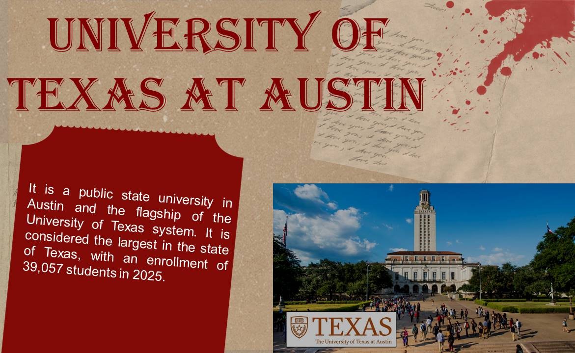 (27 slide) And this university is the University of Texas at Austin. It is a public state university in Austin and the flagship of the University of Texas system. It is considered the largest in the state of Texas, with an enrollment of 39,057 students in 2025.