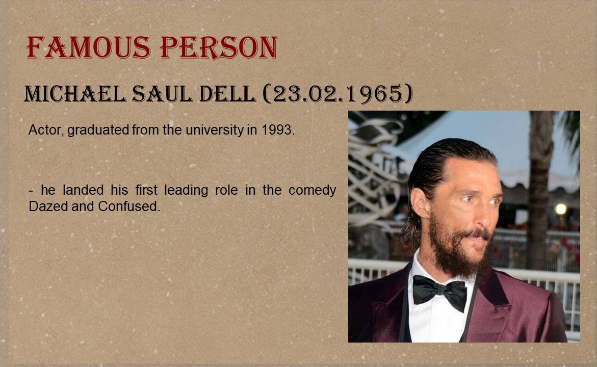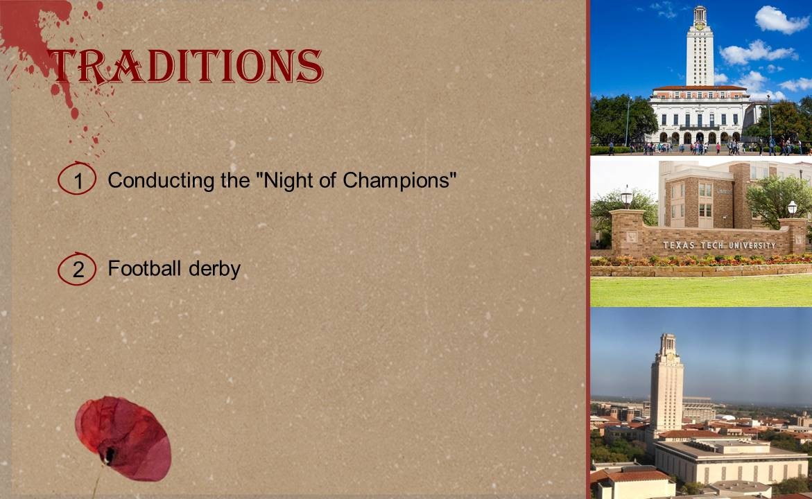 (26 slide – 1 click) This university is located in the state of Texas in the city of Austin.