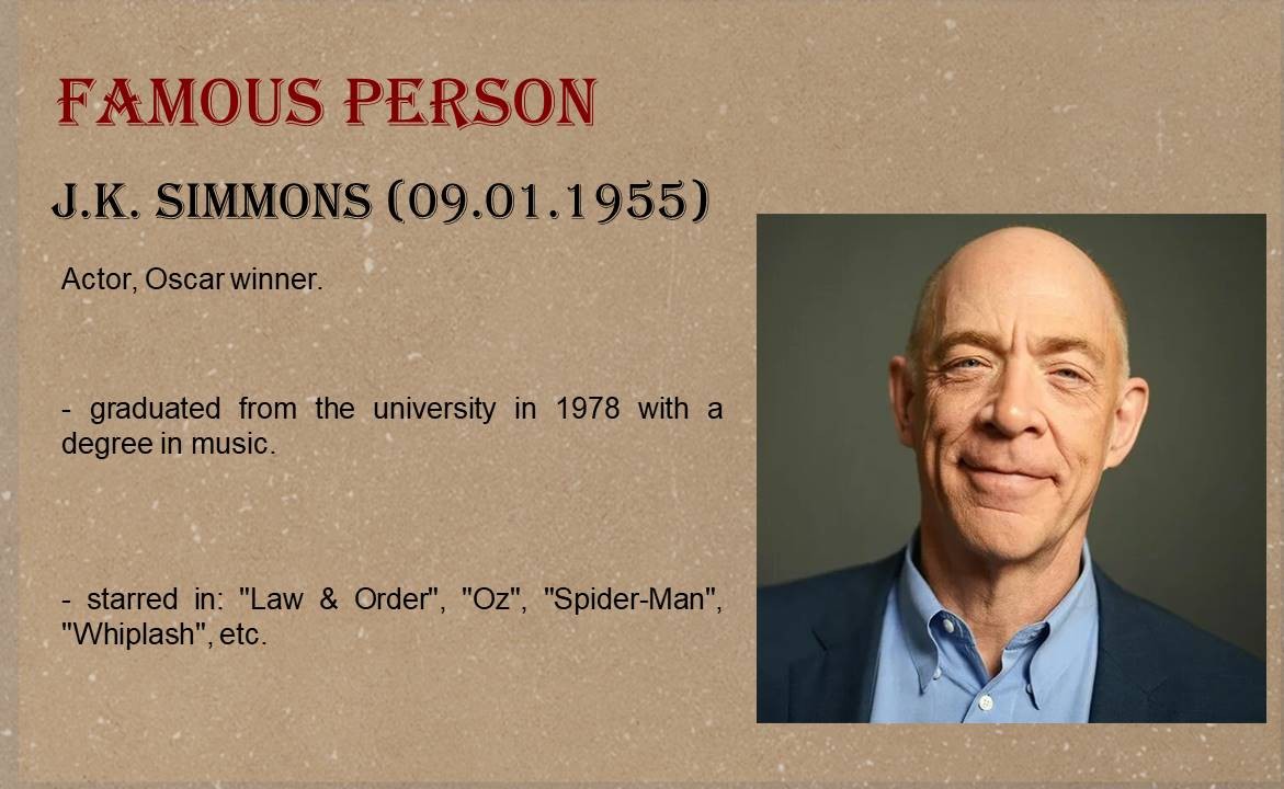(65 slide – 3 click) He starred in the films: Love & Order, Oz, Spiderman, Wnisplash, etc.