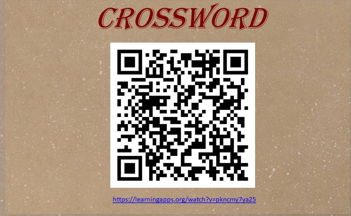 (67 slide) And finally, we want a small crossword. If you have access to the Internet, you can follow the link or point the camera at the QR code.To do this, you need to answer the questions and fill in the cells.
