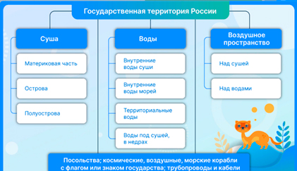 Цель: создать условия для освоение новых знаний о государственной территории России, территориальных водах, государственной границе и географическом положении страны.