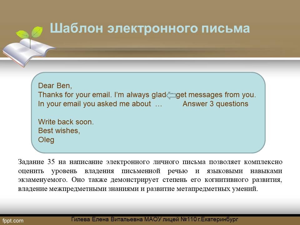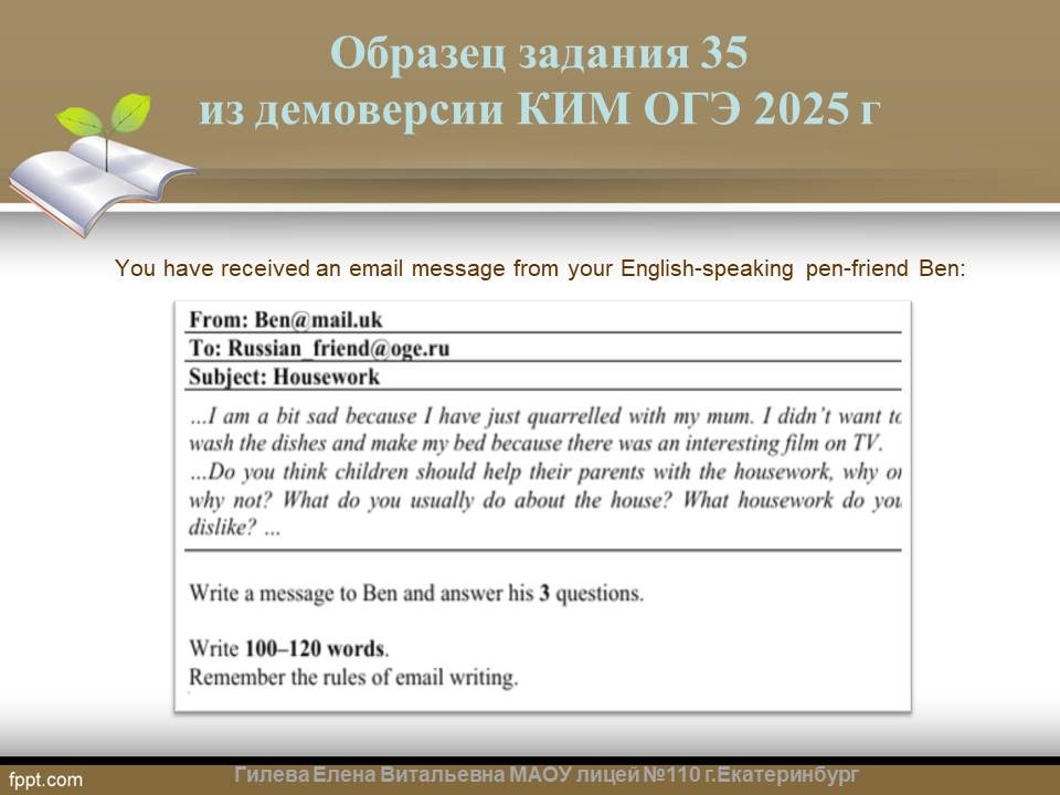 Структура написания email в рамках Государственной итоговой аттестации выпускников 9-х классов общеобразовательных учреждений 2025 года по английскому языку