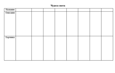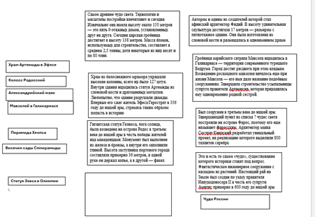 К письму прилагается раздаточный материал (см. рисунки 1-3), задача детей соединить между собой картинки, названия и описание чудес света, готовый ответ необходимо оформить в виде таблице.