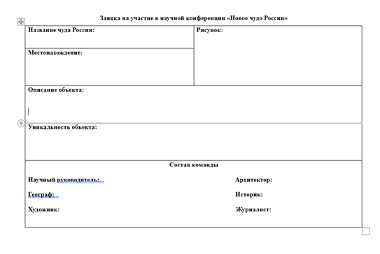 Выполняют задание: необходимо выбрать архитектурное сооружение России, которое можно назвать чудом и заполнить заявку на участие (см. рисунок 5).