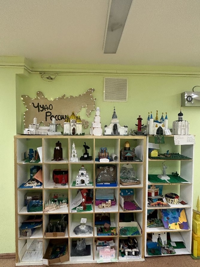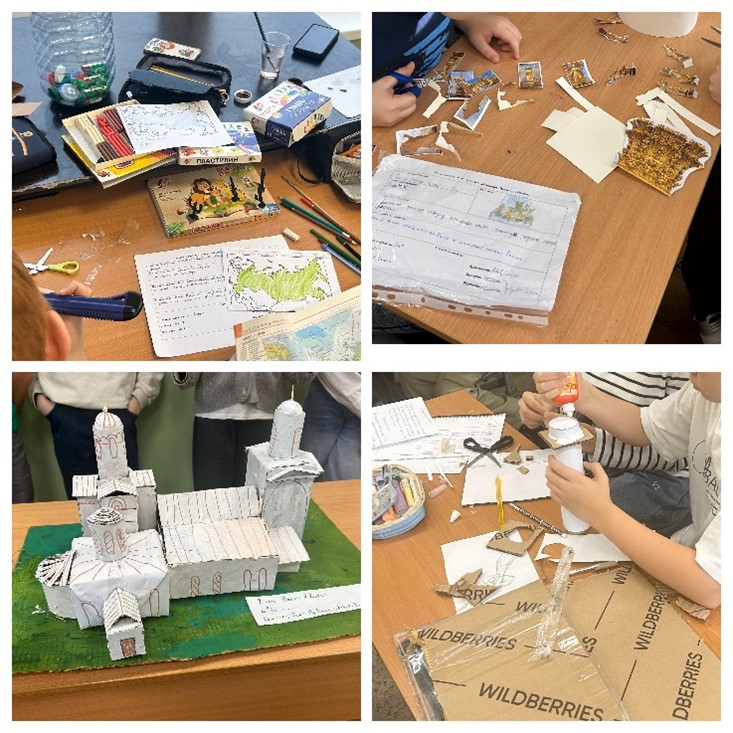 Особенностью проектной работы является то, что учитель выступает в роли организатора, а не лектора, задача педагога направить работу ребят в нужное русло. На проектную деятельность необходимо 4–6 уроков. Итоговым продуктом выступает макет архитектурного сооружения России, а также карта с местоположением объекта и описание.
