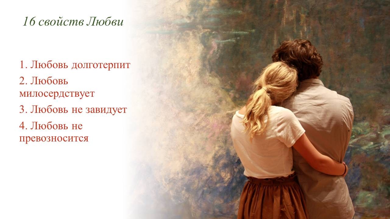 В древних книгах, которые были написаны тысячи лет назад, описаны 16 свойств любви. Мы можем доверять этим источникам, так как они прошли проверку временем и большим количеством людей.