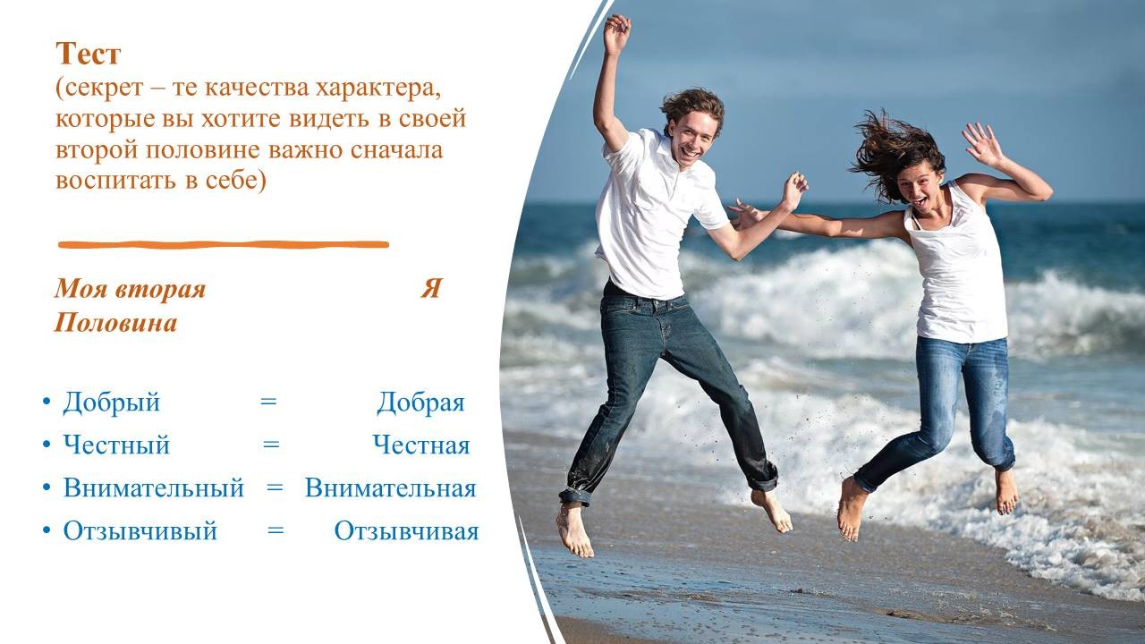 Открываю секрет этого теста. Все качества, которые вы написали для своей второй половины, должны быть в вас. Мир работает по принципу: подобное притягивает подобное!