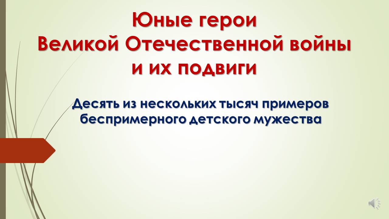 1 чтец. (1 слайд) Юные герои Великой Отечественной войны — сколько их было? Точного числа юных героев Великой Отечественной войны мы не узнаем уже никогда. Но это не причина не помнить о них.