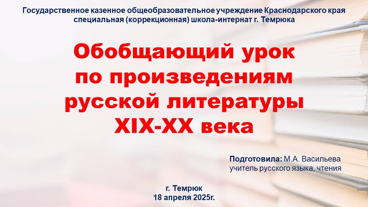 Сегодня мы проводим обобщающий урок по теме: “Произведения русской литературы XIX-XX века”. На этом уроке мы должны повторить все произведения, которые изучили в данном разделе. Определить их жанр.