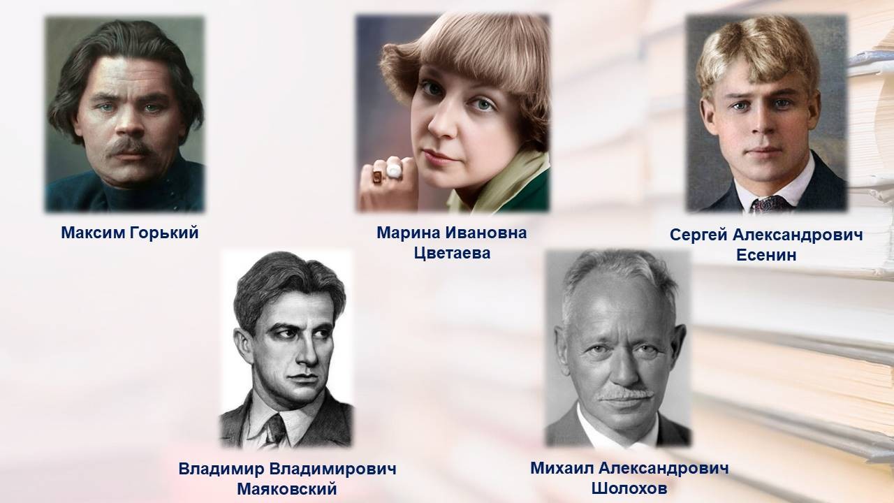 Слайд 4. М.Горький, Цветаева М.И., Есенин С.А., Маяковский В.В., Шолохов М.А.