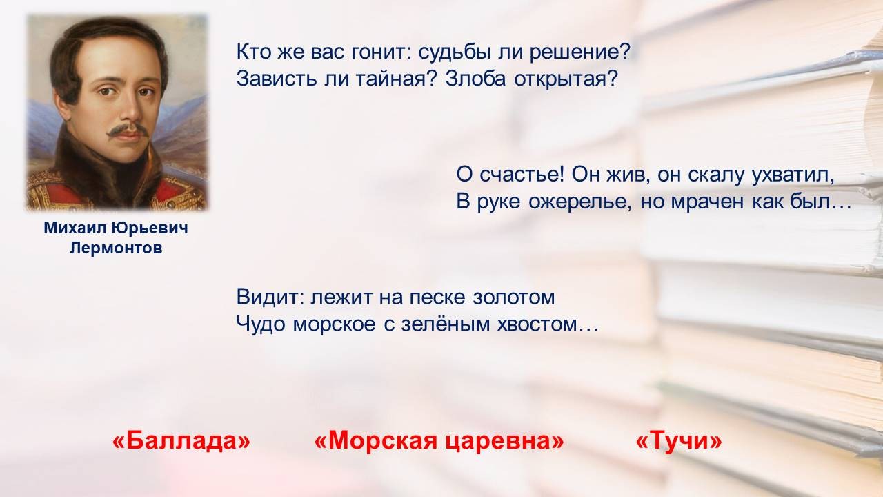 Зависть ли тайная? злоба открытая?” (“Тучи”)“О счастье! Он жив, он скалу ухватил,