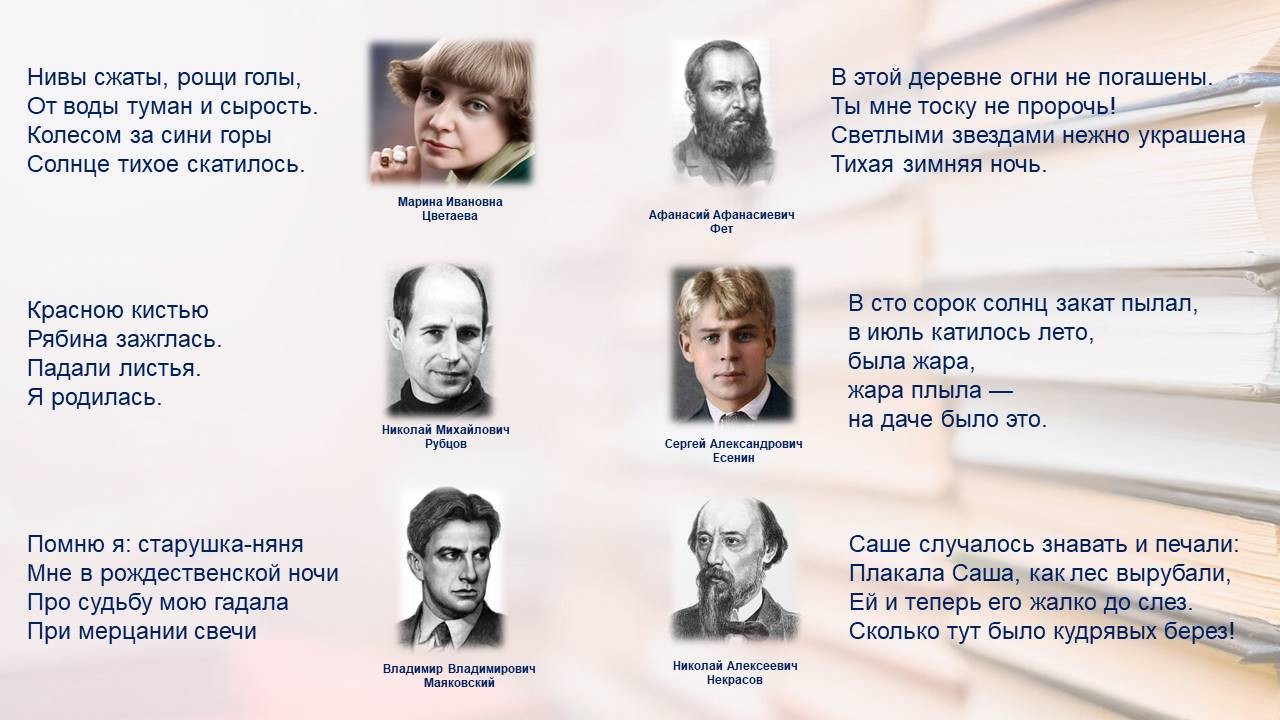 Уж коль мы заговорили о писателях и поэтах XIX-XX века, давайте вспомним, с кем из них мы познакомились?