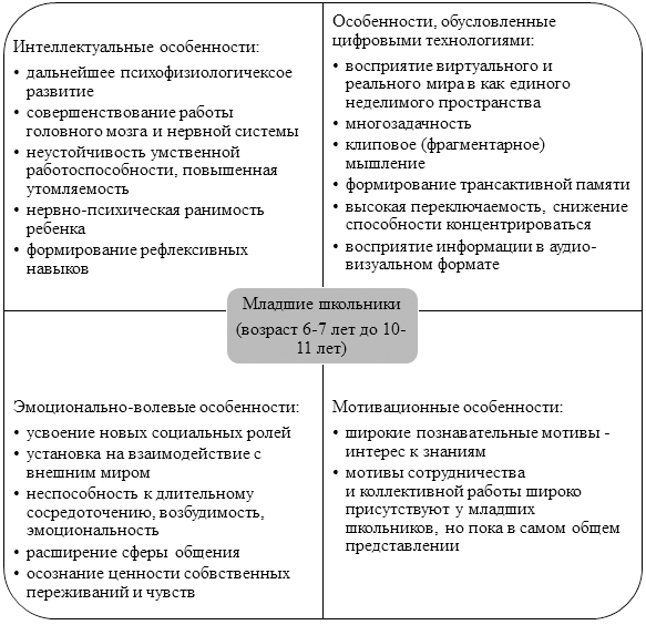 На основании изучения научной литературы, можно систематизировать особенности младшего школьного возраста (Рис. 1. Особенности младшего школьного возраста).