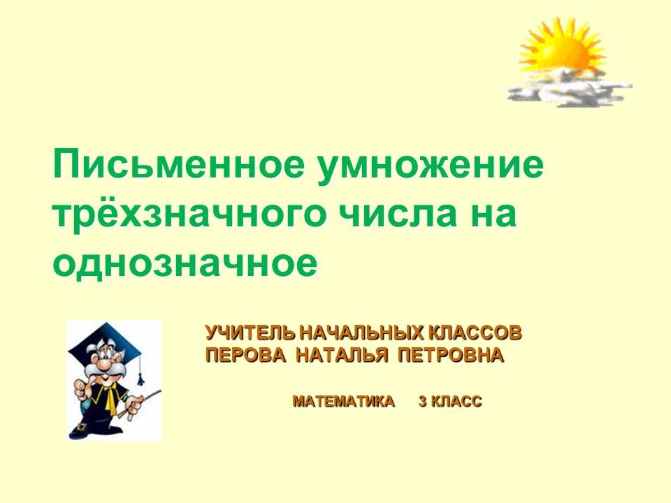 Презентация к уроку математики в 3-м классе по теме "Письменное умножение трёхзначного числа на однозначное"