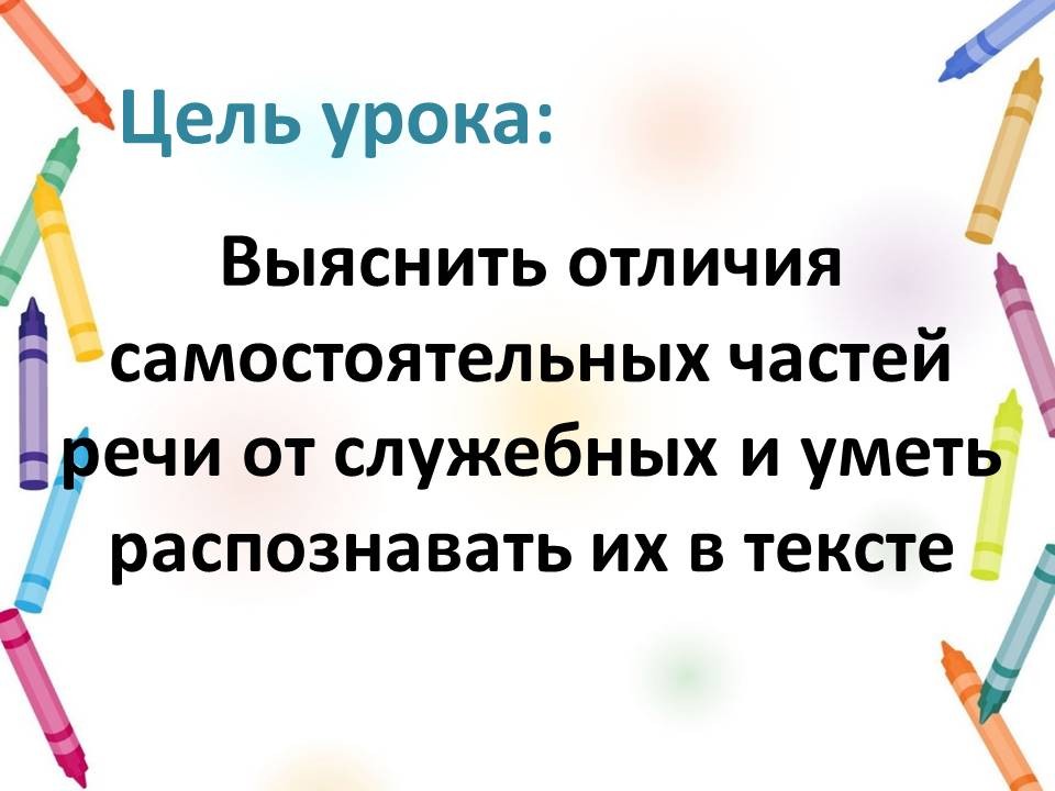 Выяснить отличия самостоятельных от служебных частей речи,уметь распознавать их в тексте.