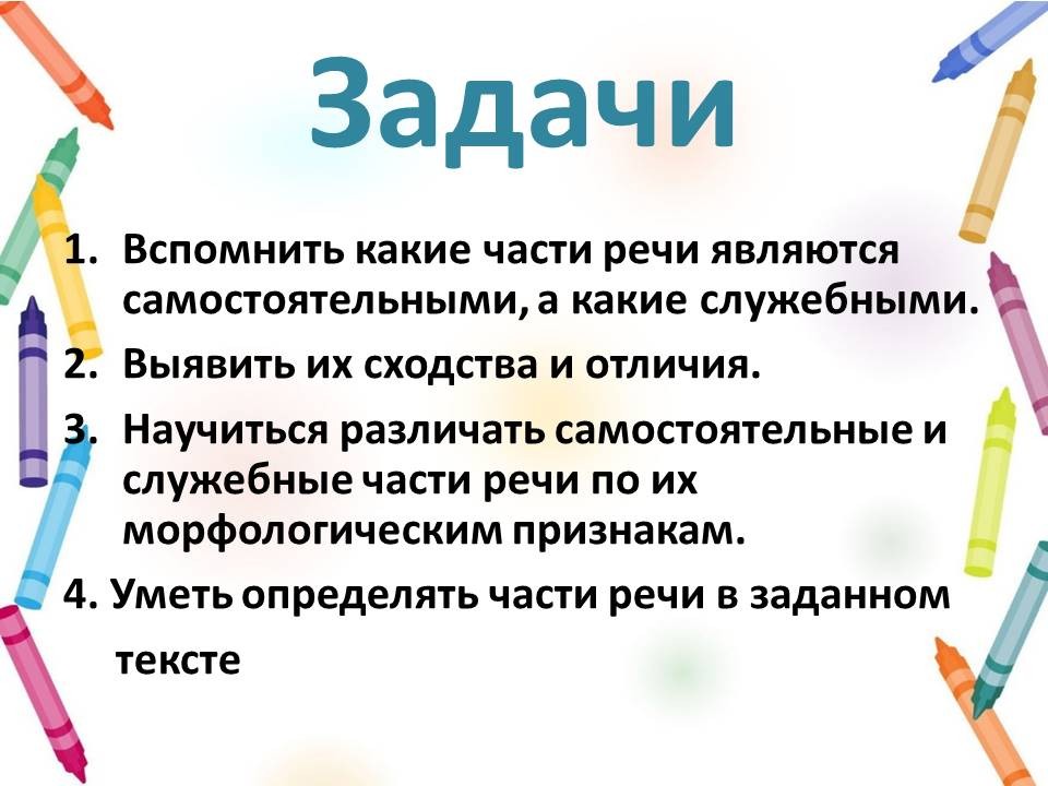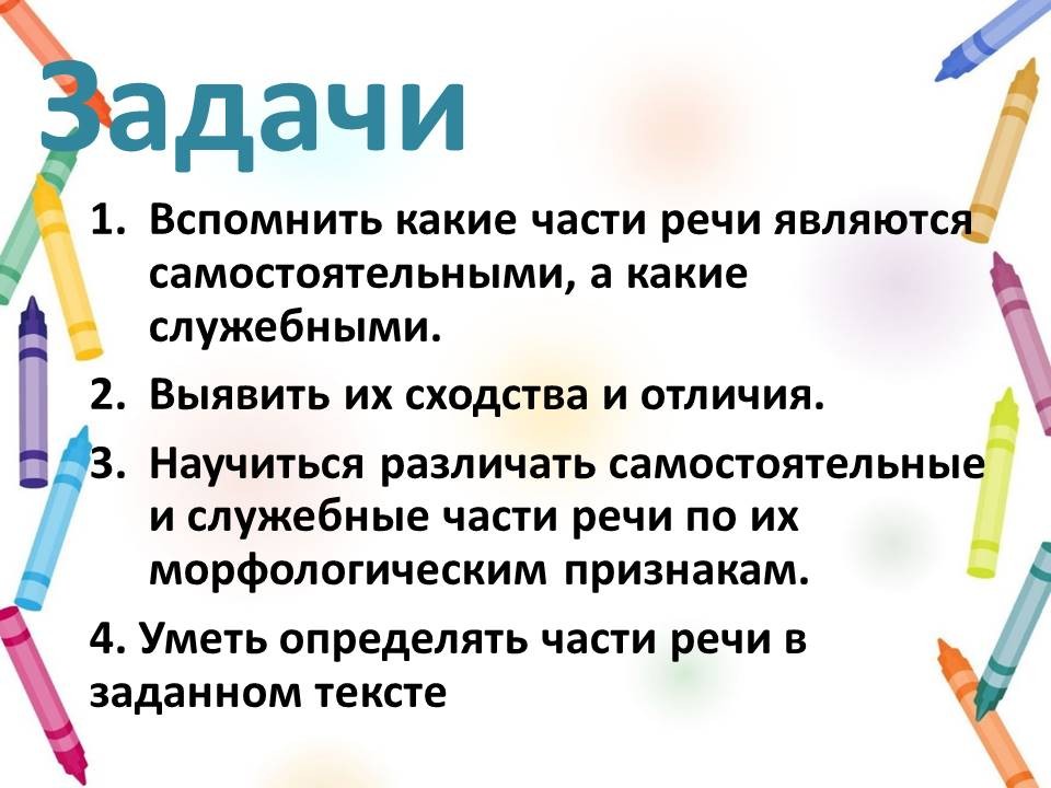 3 научиться различать самостоятельно и служебной части речи по их морфологическим признакам.