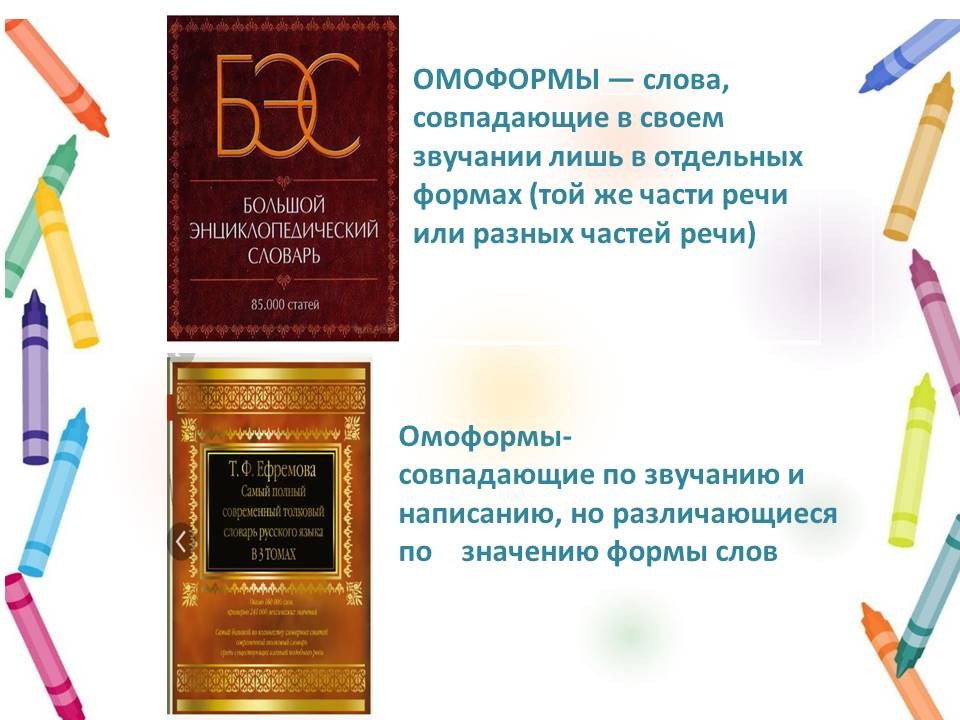 Омоформы - совпадающие по звучанию и написанию, но различающиеся по значению формы слов