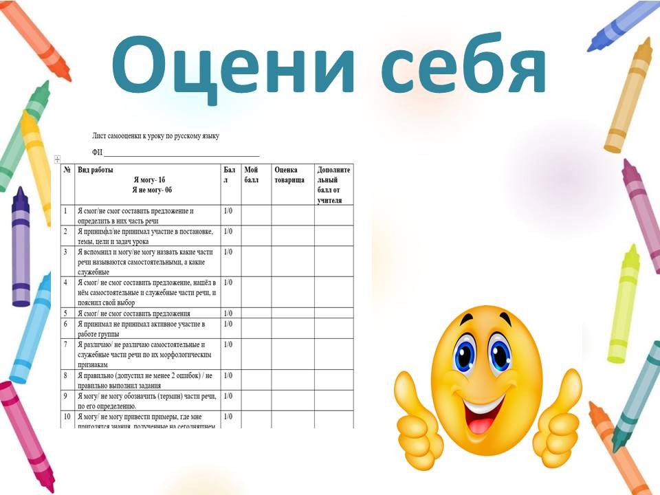 Оцените себя, посчитайте баллы. Выставите отметку |