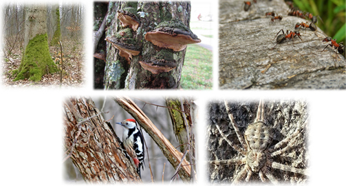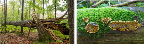 Упавшие стволы и ветки становятся прекрасными убежищами для многих живых существ, а некоторым – предоставляют изобильную пищу. Здесь находят приют не только насекомые и их личинки, но и ящерицы, жабы, ужи. Питательными веществами древесины пользуются разнообразные грибы (например, летипорус или опята), процветающие на поваленных стволах и ветках.