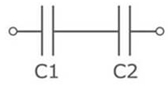 При этом типе соединения емкость батареи конденсаторов меньше емкости любого из конденсаторов.
