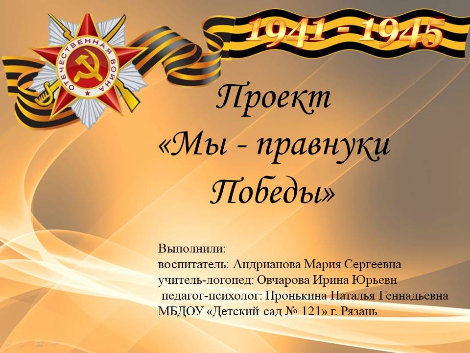 Цель проекта — сохранение исторической памяти о событиях Великой Отечественной войны; воспитание патриотизма у детей дошкольного возраста. Создание методической базы для реализации проекта.