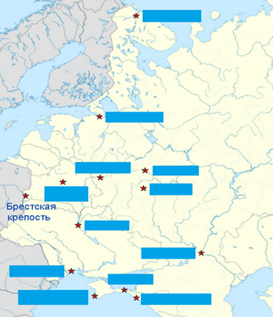 Организатор: Когда в июне 1941 г. фашистская Германия обрушила на наш страну всю мощь своего удара, на ее пути встал каждый советский город. В них шла героическая борьба за каждый квартал, за каждый метр земли, что очень сильно изматывало противника. Особо отличившимся городам за массово проявленное мужество и героизм их защитников впоследствии было присвоено высокое звание «Город-герой». Звание «Город-герой» получили 12 советских городов и одна крепость. Города отмечены на карте звёздочками, вам необходимо расставить таблички с названиями городов.