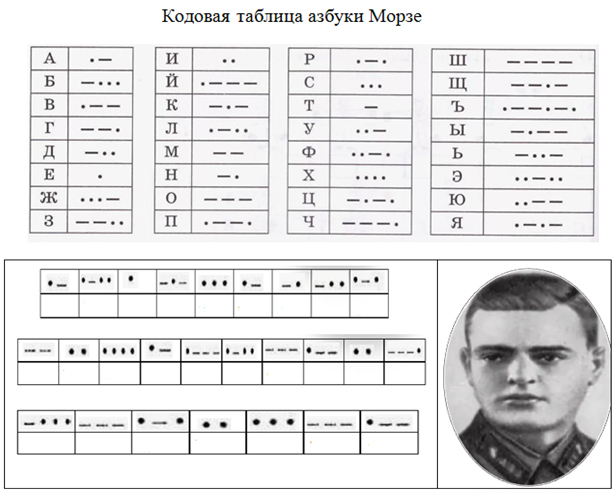 Организатор: - Азбука Морзе или «Морзянка» — это способ кодирования букв алфавита при помощи длинных и коротких сигналов, так называемых «тире» и «точек». Её изобрёл американец Сэмюэл Морзе в 1835 году. В годы Великой Отечественной войны азбука Морзе стала одним из основных способов передачи информации и обеспечила победный исход немалого числа сражений. С её помощью передавали сообщения на дальних расстояниях и в условиях сильных радиопомех.