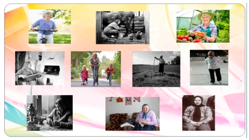 Учащиеся пишут небольшое сочинение о своей бабушке. Указывают особенности ее характера, внешности, привычки, увлечения, занятия. После окончания работы ребята представляют сочинение.