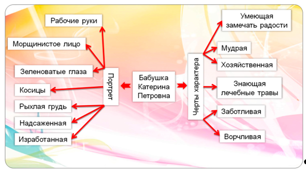 - систематизируют полученный материал о бабушке писателя, оформят в виде кластера;