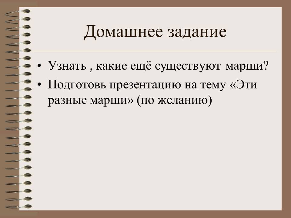 - Подготовь презентацию на тему «Эти разные марши» (по желанию)