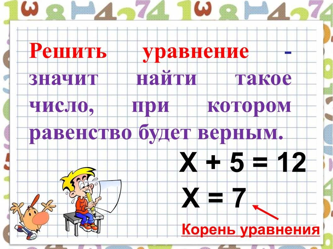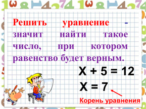 Решить уравнение – значит найти неизвестное число, чтобы равенство стало верным.