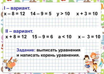 – Тема нашего урока – уравнение. В старших классах самые трудные задания вы будете решать с помощью уравнений. Ещё 4000 лет назад их решали математики в Древнем Египте и в Вавилоне.