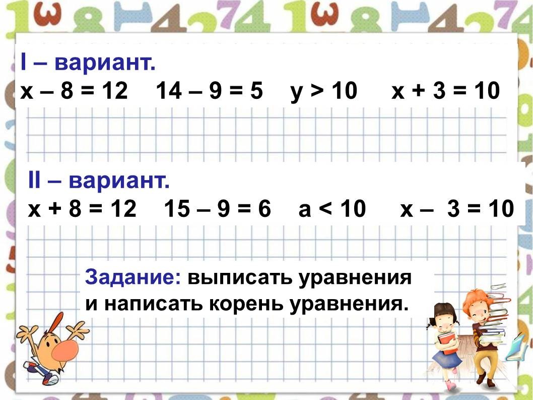 - Найдите это число, чтобы равенство было верным (Это число 7, потому что 7 + 5 =12)