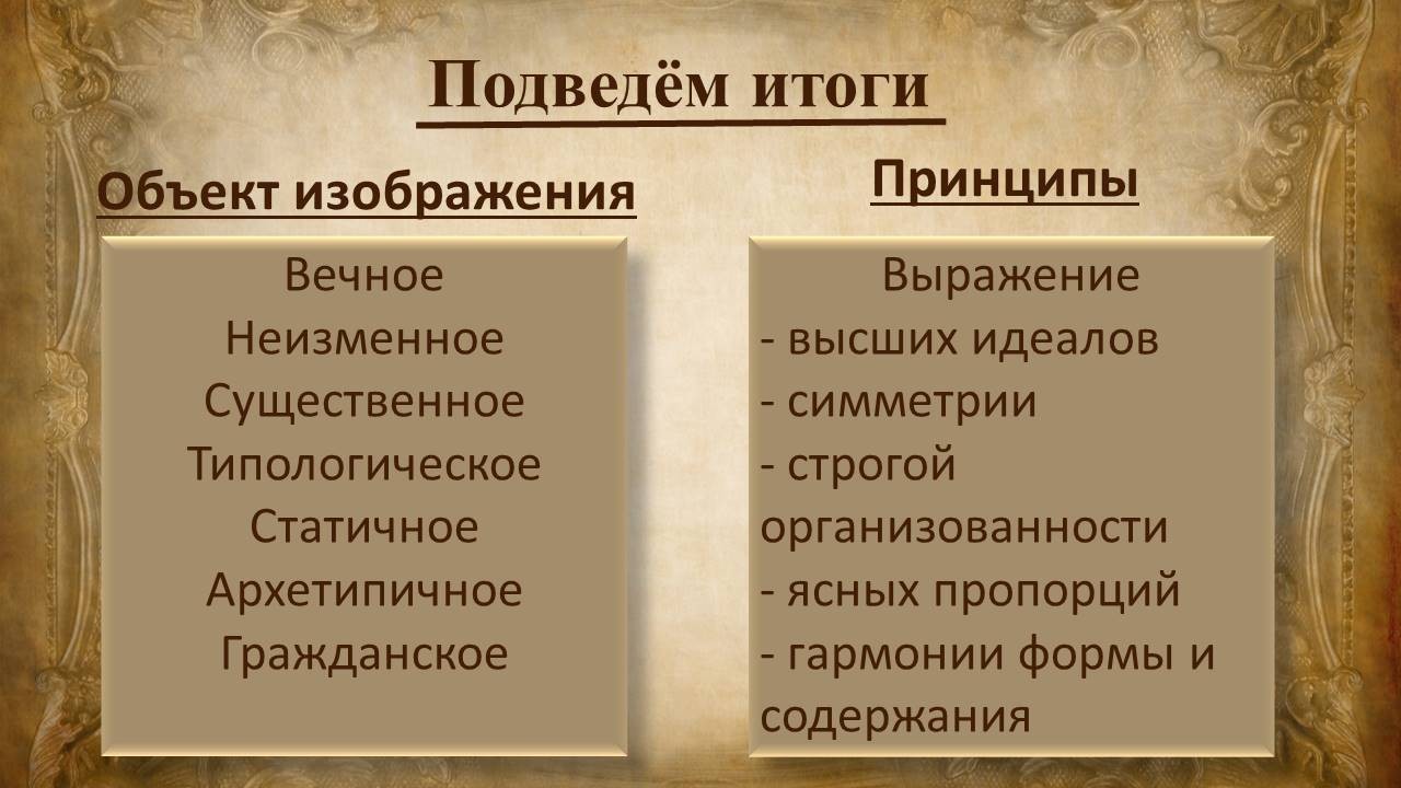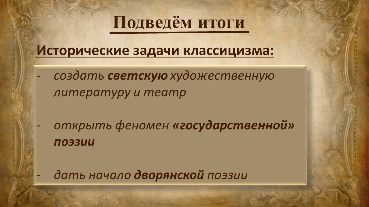 Слайды 17-18-19 Исторические задачи классицизма. Выводы (всё на слайдах)