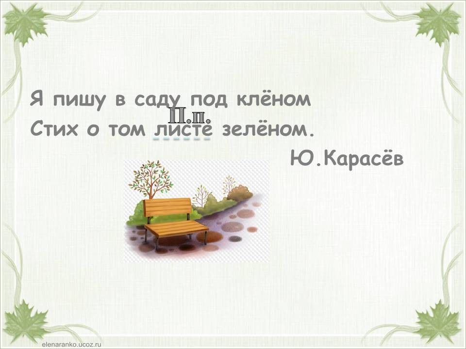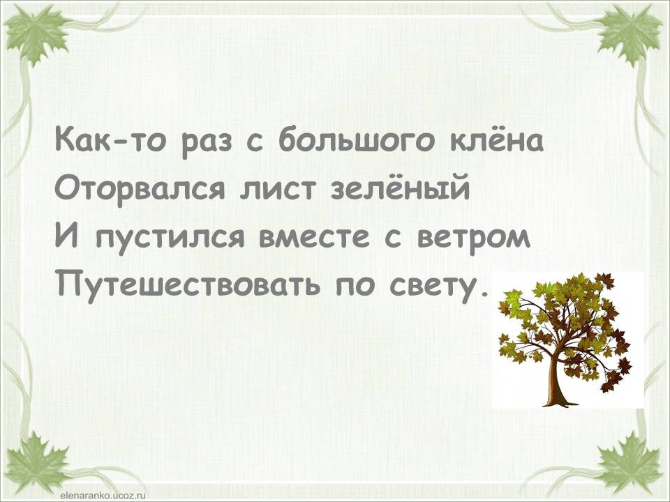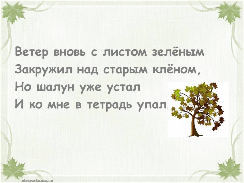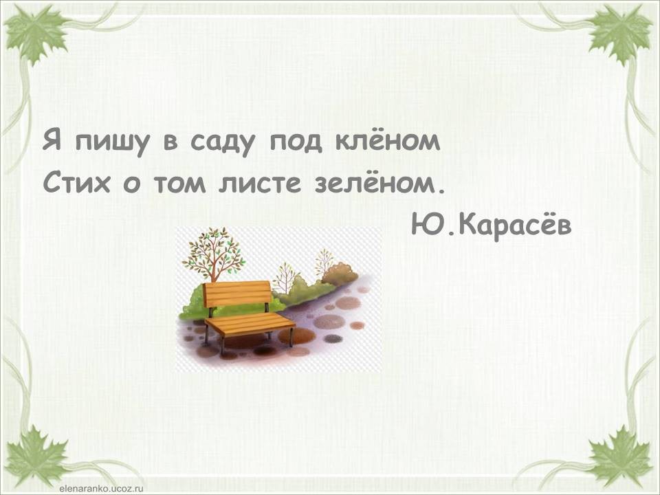 Я пишу в саду под клёном стих о том листе зелёном.