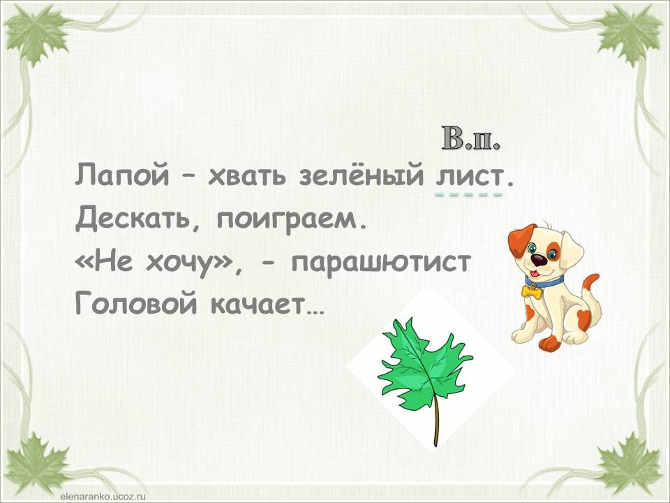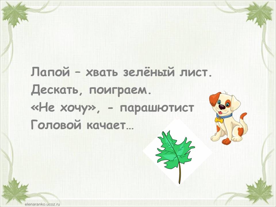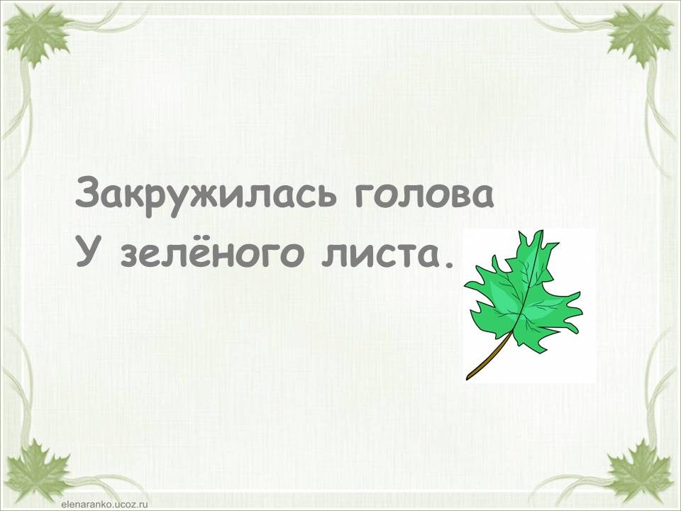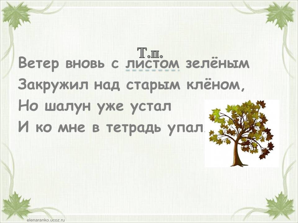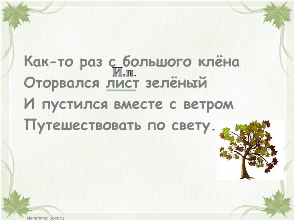 Я пишу в саду под клёном стих о том листе зелёном.