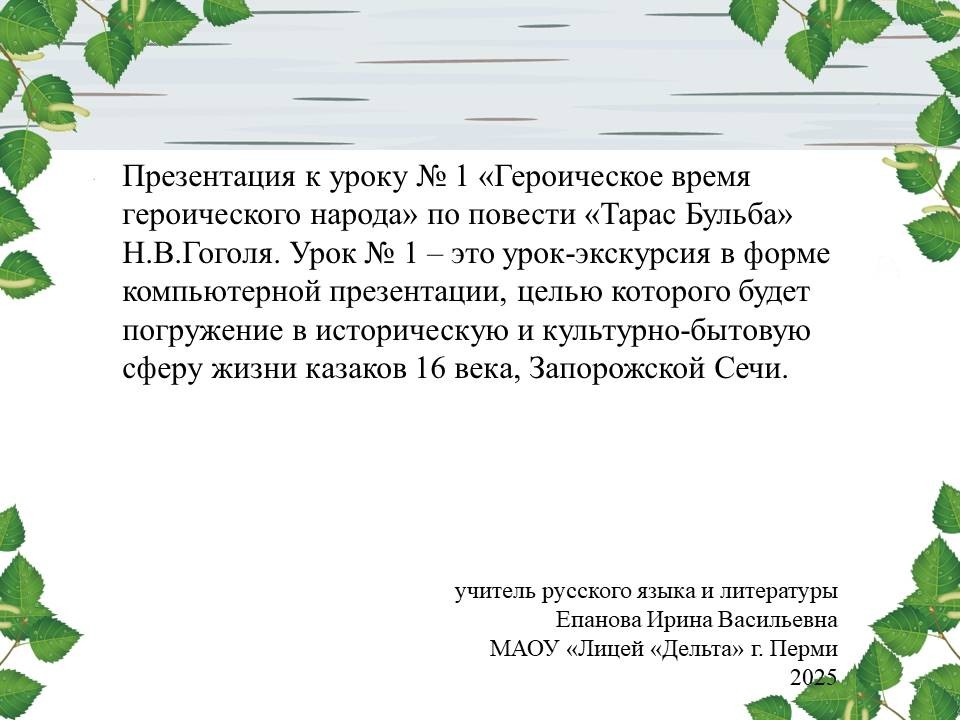 Ключевые слова: Н.В.Гоголь «Тарас Бульба»